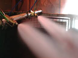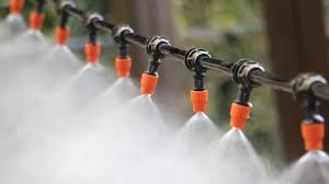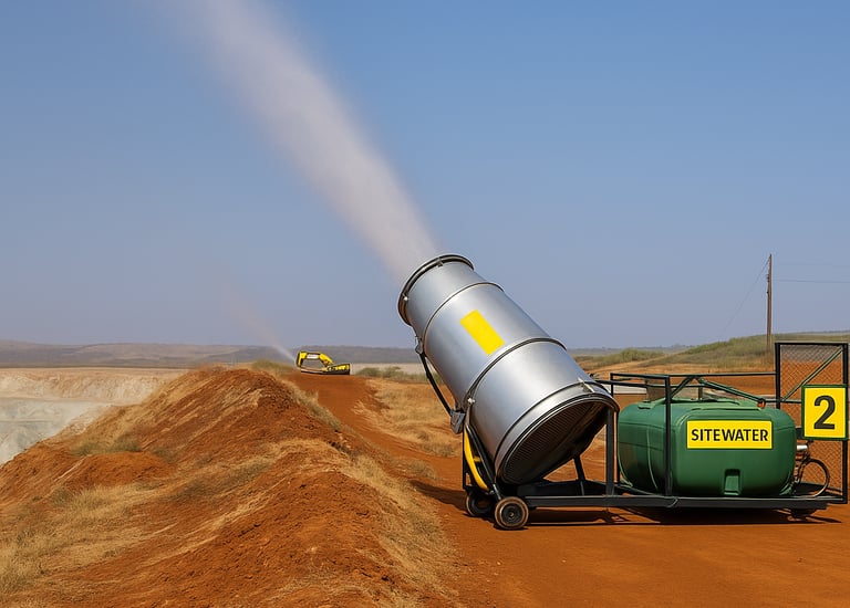 Water spraying setup to minimize dust and improve air quality in work zones.
